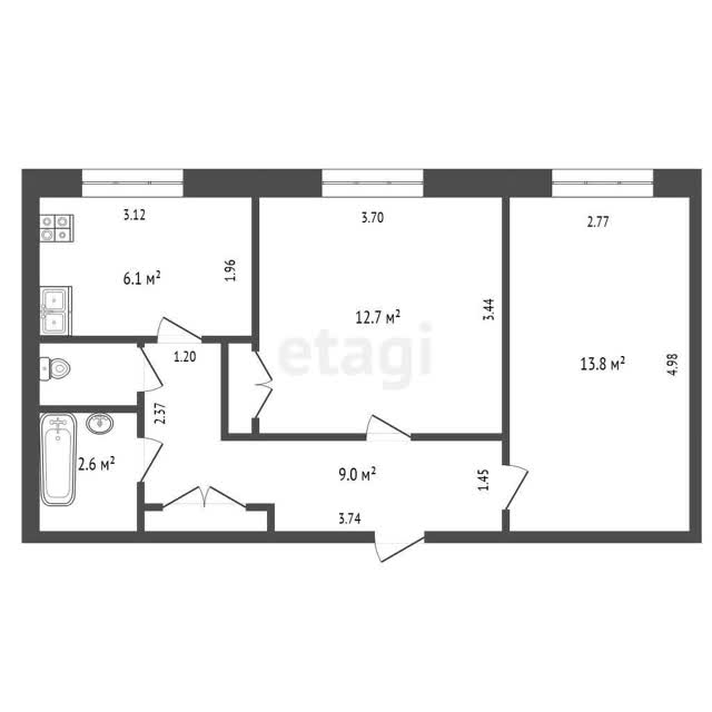 - Площадь кухни6.1 м²